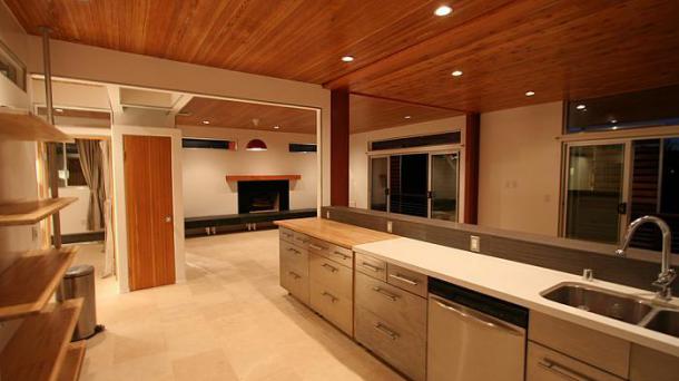 This apartment with nice shades of blue and a beautiful bathroom will help you to relax after work.